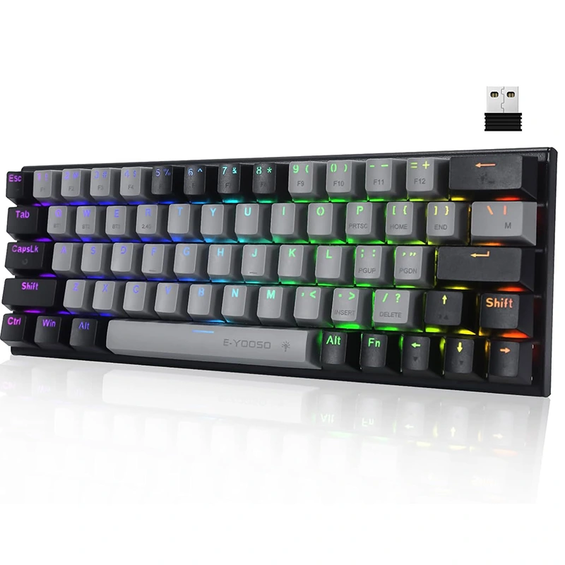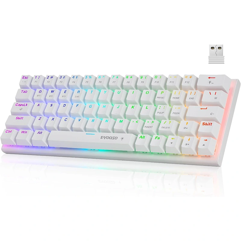 Följande är en introduktion till EYOOSO Z-11 63 Key RGB bakgrundsbelyst trådlöst 2,4GHz Mekaniskt speltangentbord, jag hoppas kunna hjälpa dig att bättre förstå tangentbord med fyra modeller. Välkommen nya och gamla kunder att fortsätta att samarbeta med oss för att skapa en bättre framtid tillsammans!