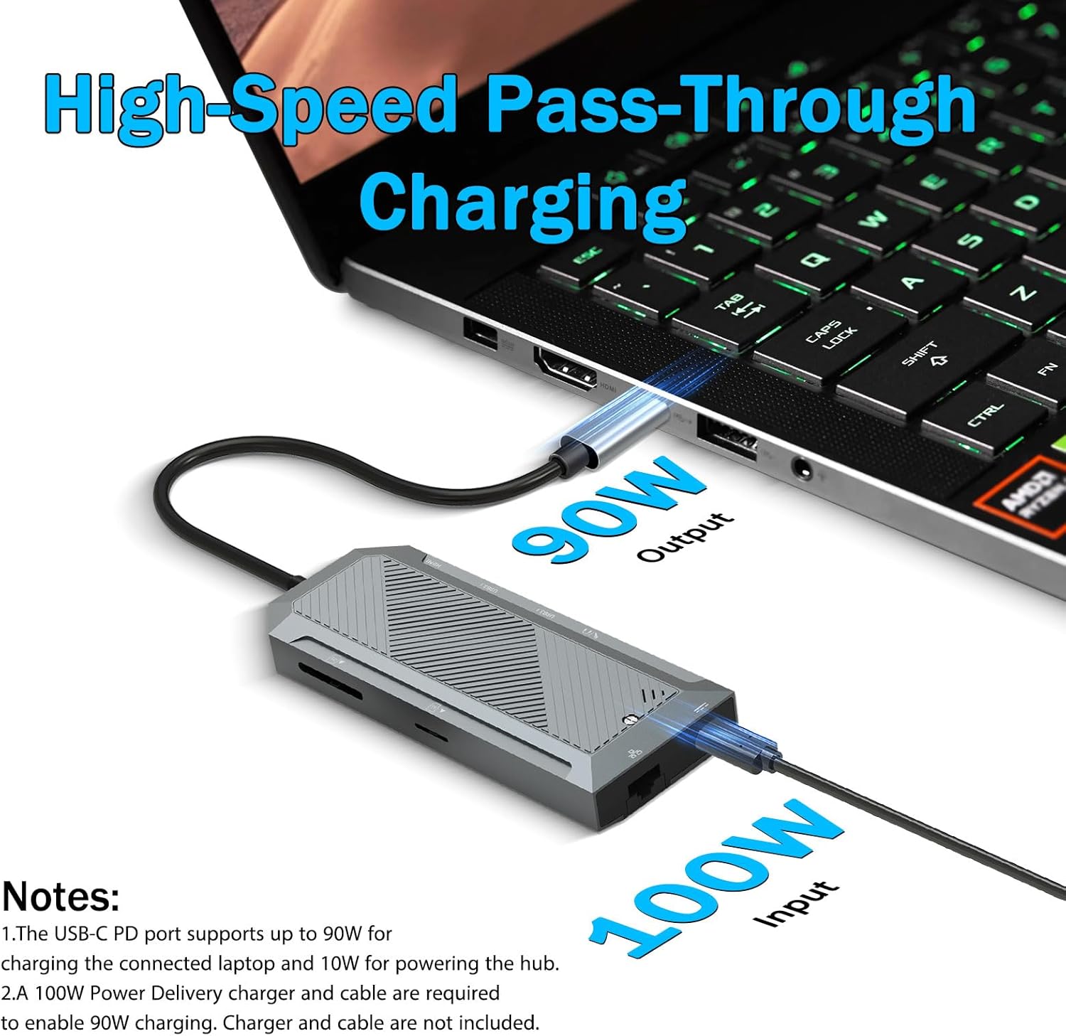 9-i-1 USB-C Hub med SSD-hölje för M.2 NVMe 4K 60Hz HDMI Splitter är en multifunktionell expansionsenhet designad för att förbättra anslutningsmöjligheterna för bärbara datorer, surfplattor och andra USB-C-kompatibla enheter. Den integrerar nio viktiga funktioner i en enda kompakt enhet, vilket gör det möjligt för användare att ansluta flera kringutrustning samtidigt som höghastighetsdataöverföring och tillförlitlig kraftleverans bibehålls.