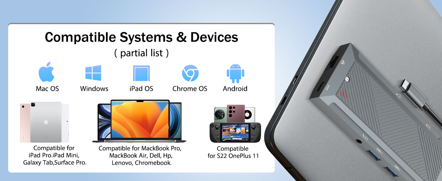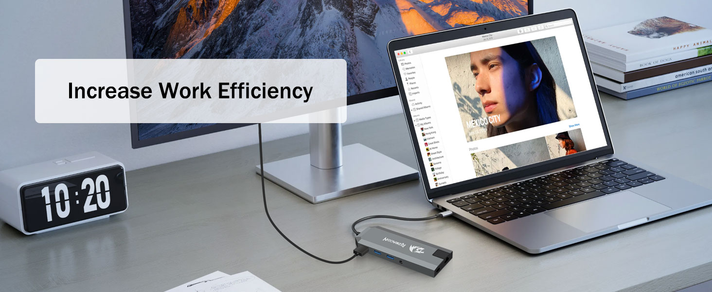 Oavsett om det används för professionellt arbete, kreativ produktion, affärsresor eller hemmakontor, erbjuder detta nav ett praktiskt och effektivt sätt att maximera prestanda hos moderna enheter.