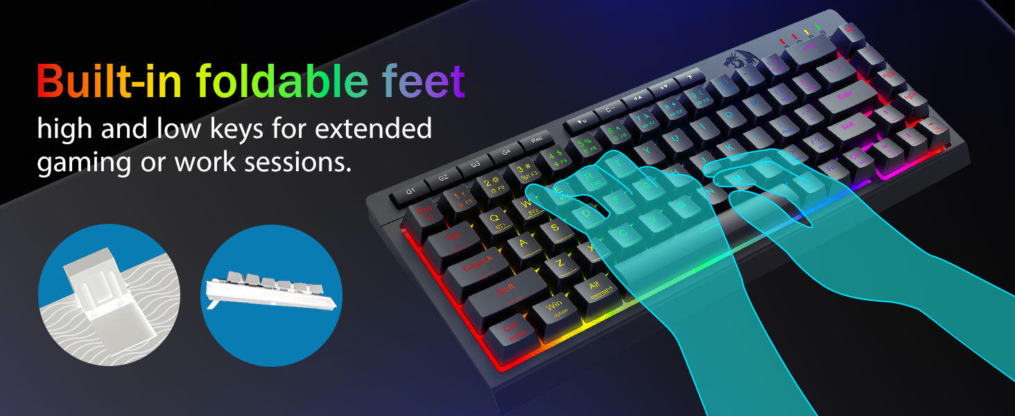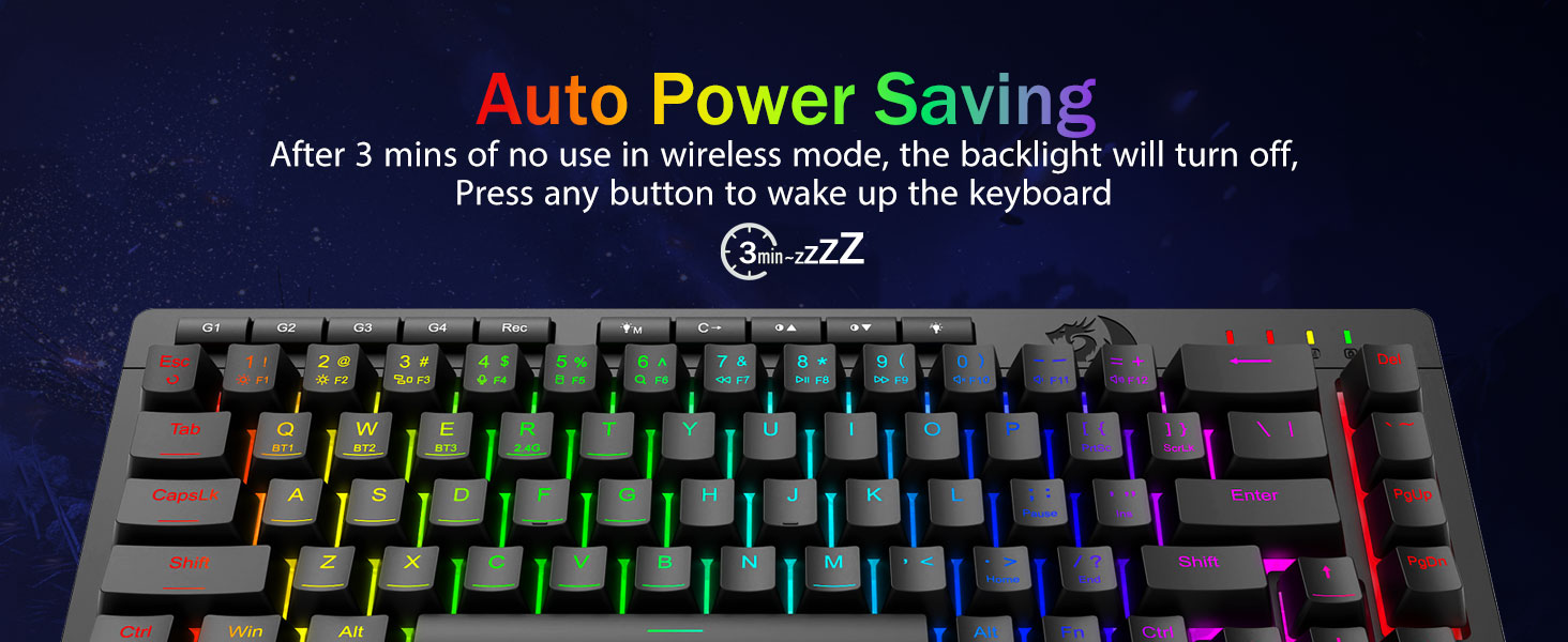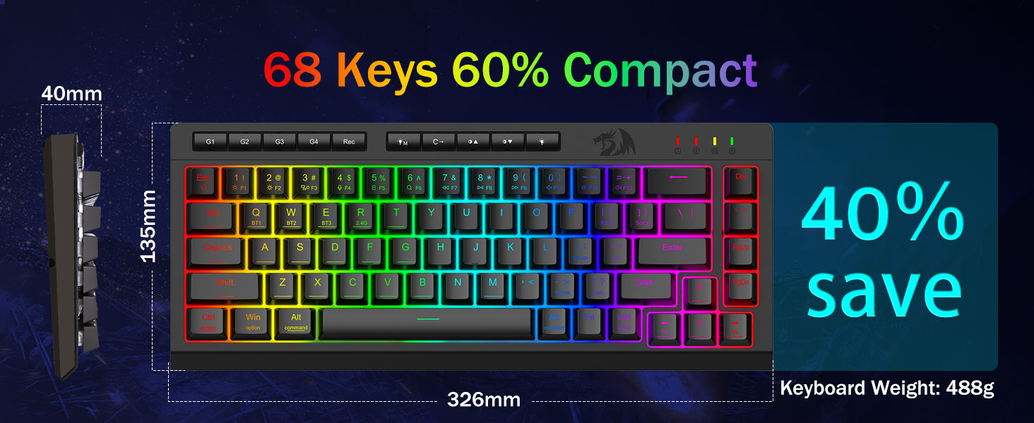 Uppslukande RGB-belysning och anpassningsbar atmosfär -Släpp loss 16,8 miljoner RGB-färger med 8 förinställda lägen (Rainbow Wave, Reactive Typing) + 6 DIY-profiler. Justera ljusstyrkan från levande glöd till smygläge – perfekt för sena kvällsspel eller kontorsbruk.