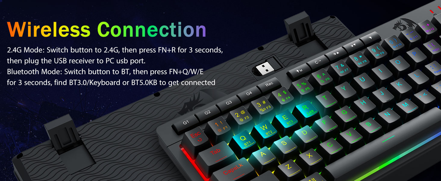 Tillverkad av den branschledande tillverkaren Chuangquan, Redragon Black K519 Pro Portable Wireless Gaming Keyboard levererar elitprestanda med robust anslutning i tre lägen (Bluetooth/2,4GHz/USB-C), sömlös sammankoppling av flera enheter och fullt programmerbara makrotangenter. Designad för precision, den har livfull RGB-belysning, avancerad anti-ghosting-teknik och ett långvarigt 4000mAh-batteri. Det här tangentbordet är konstruerat för komfort med tysta tangenter och djup mjukvaruanpassning och återspeglar Chuangquans stränga kvalitetskontroll. Företag kan med tillförsikt köpa denna produkt direkt från fabriken i Kina, dra nytta av konkurrenskraftiga grossistpriser och pålitligt stöd för leveranskedjan