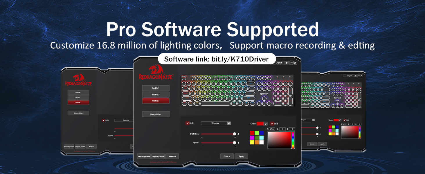 𝗣𝗿𝗼 𝗦𝗼𝗳𝘁𝘄𝗮𝗿𝗲 𝗦𝘂𝗽𝗽𝗼𝗿𝘁𝗲𝗱 -Utöka dina alternativ med den tillgängliga programvaran för att designa dina egna nya lägen och effekter. Makron med olika tangentbindningar eller genvägar för effektivare arbete och spel.