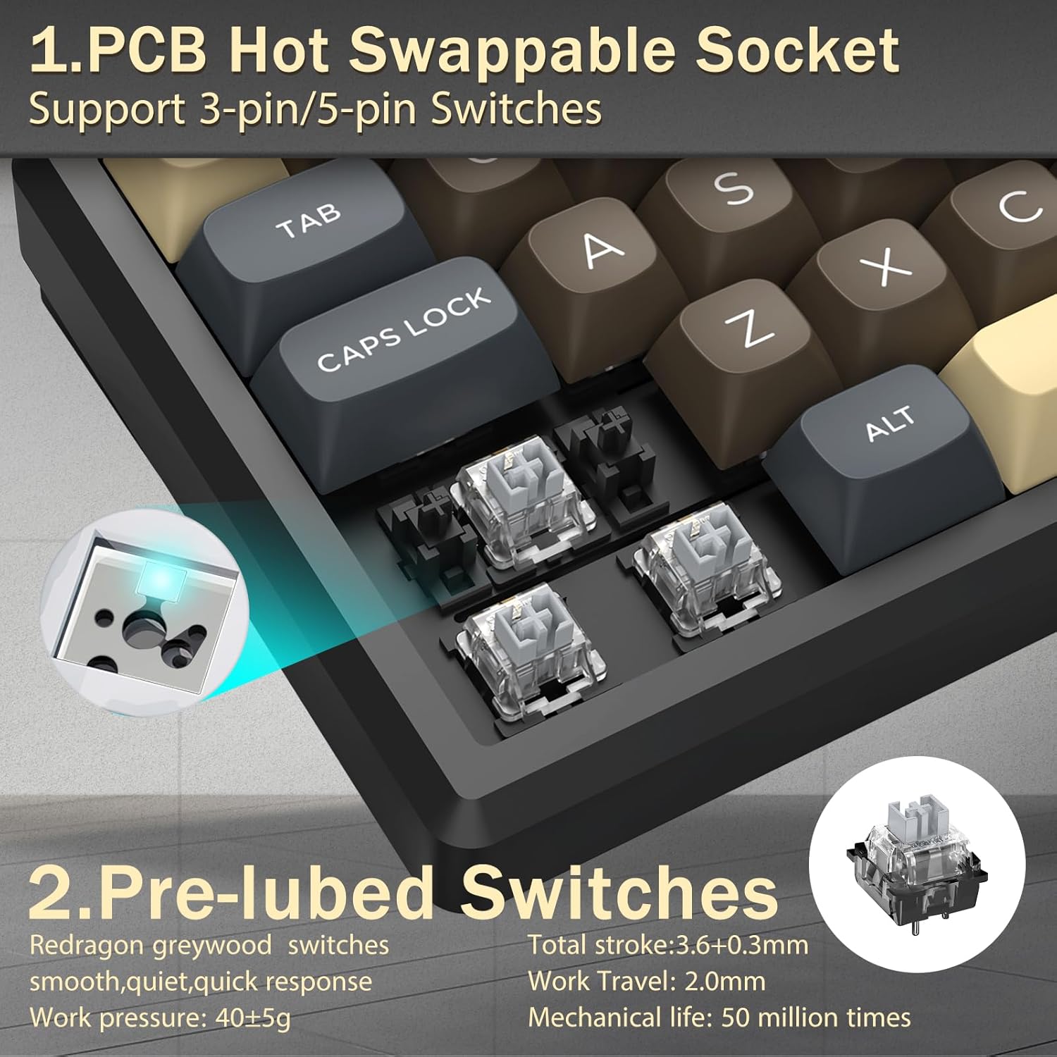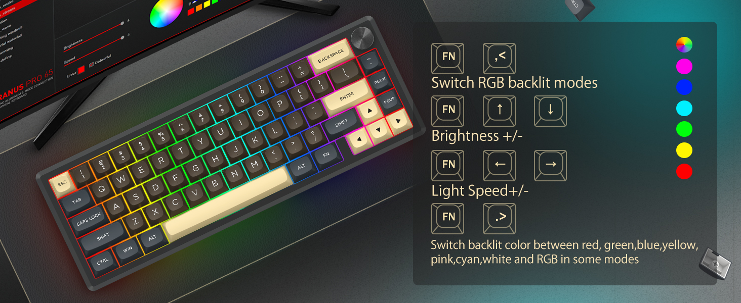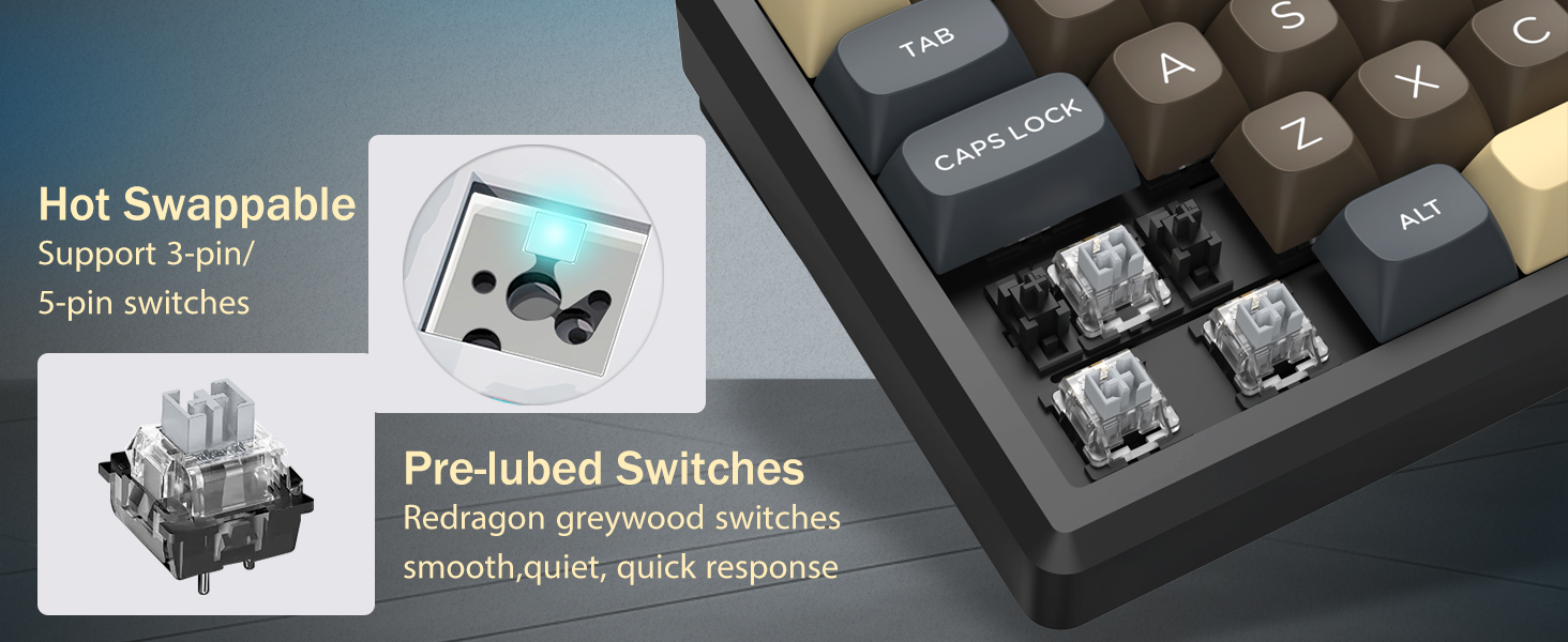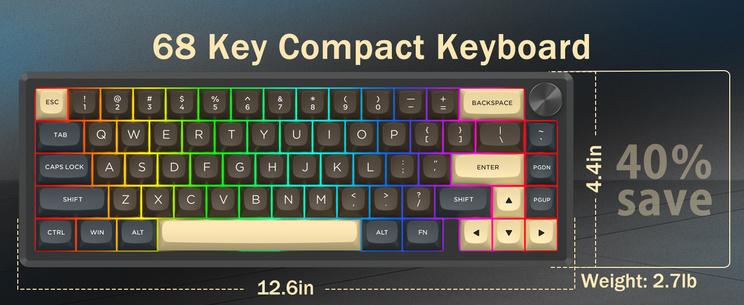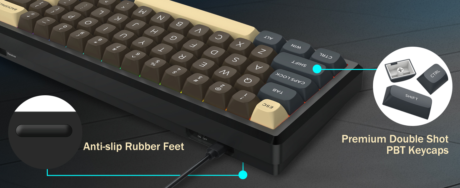 Med sin layout på 60 % tar detta tangentbord bort icke-nödvändiga tangenter samtidigt som kärnfunktionaliteten behålls genom tangentkombinationer. Denna design hjälper till att minska stök på skrivbordet och ger mer utrymme för musrörelser, vilket gör den lämplig för både spel- och produktivitetsmiljöer.