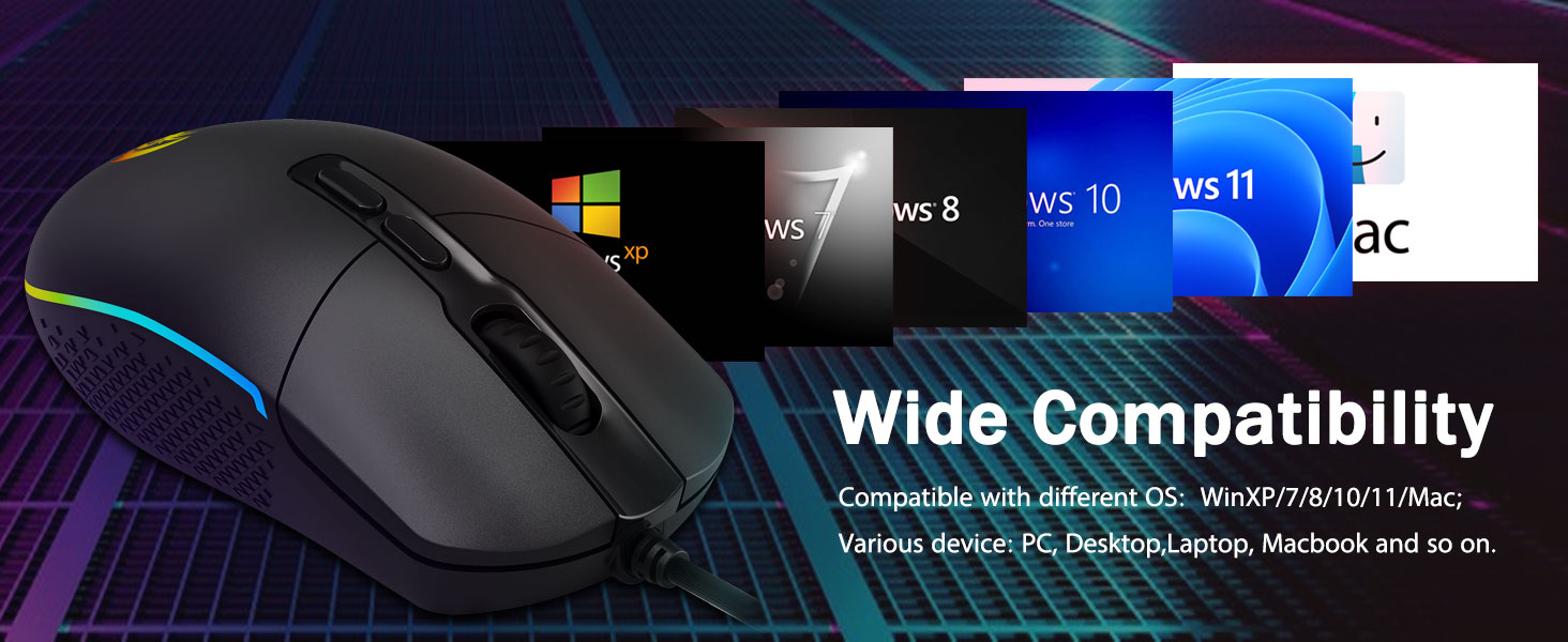 Valet av inbitna spelare- Oavsett om du siktar, siktar, hugger eller attackerar, är en professionell spelmus ditt bästa vapen! Musen kommer att vara din idealiska partner. Perfekt kompatibel med Windows XP/Vista/Win7/Win8/Win10/ME/2000/Mac, etc.