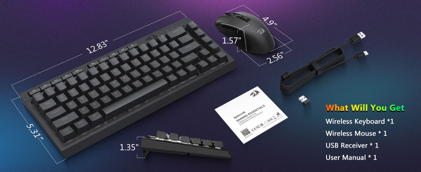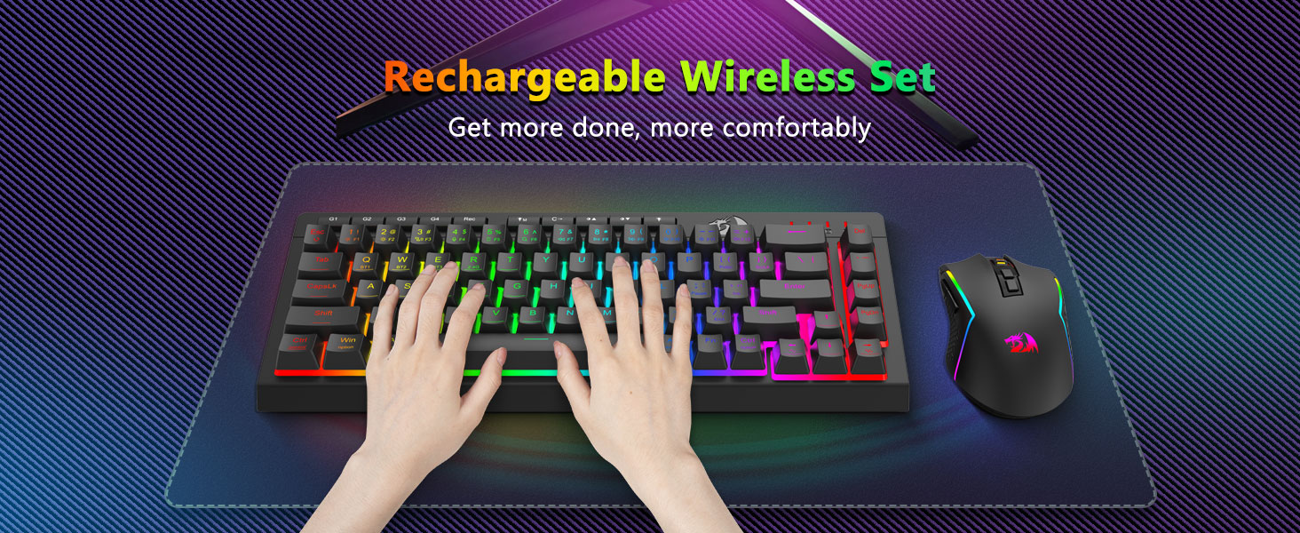 Black S157 Wireless Gaming Keyboard and Mouse Combo från Redragon, sakkunnigt tillverkad av den professionella tillverkaren Chuangquan, är designad för att lyfta din spelstation både i prestanda och stil. Tangentbordet erbjuder en tillfredsställande taktil respons, perfekt för både intensiva spelmaraton och långa skrivsessioner, medan musen säkerställer exakt precision med sina justerbara DPI-inställningar för överlägsen kontroll i spelet. Båda komponenterna är utrustade med fängslande RGB-bakgrundsbelysning, så att du kan anpassa din installations atmosfär med ett spektrum av färger och dynamiska effekter.